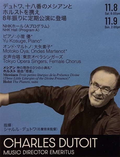デュトワさん、N響、ピアノ小菅優さん、オンド・マルトノ大矢素子さん、そしてこの曲の為に編成した東京オペラシンガーズ36名の女声合唱。これだけのメンバーでの「神の現存の…」は、これから10年は無いかも知れませんね。乞うご期待です。